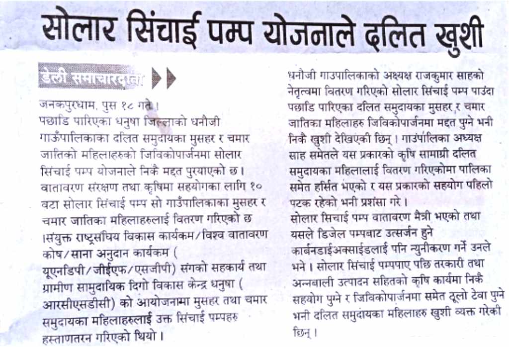 Promotion of Affordable Sun Flower Irrigation Pump for Irrigation Pump for Sustainable Livelihood at Dhanusa